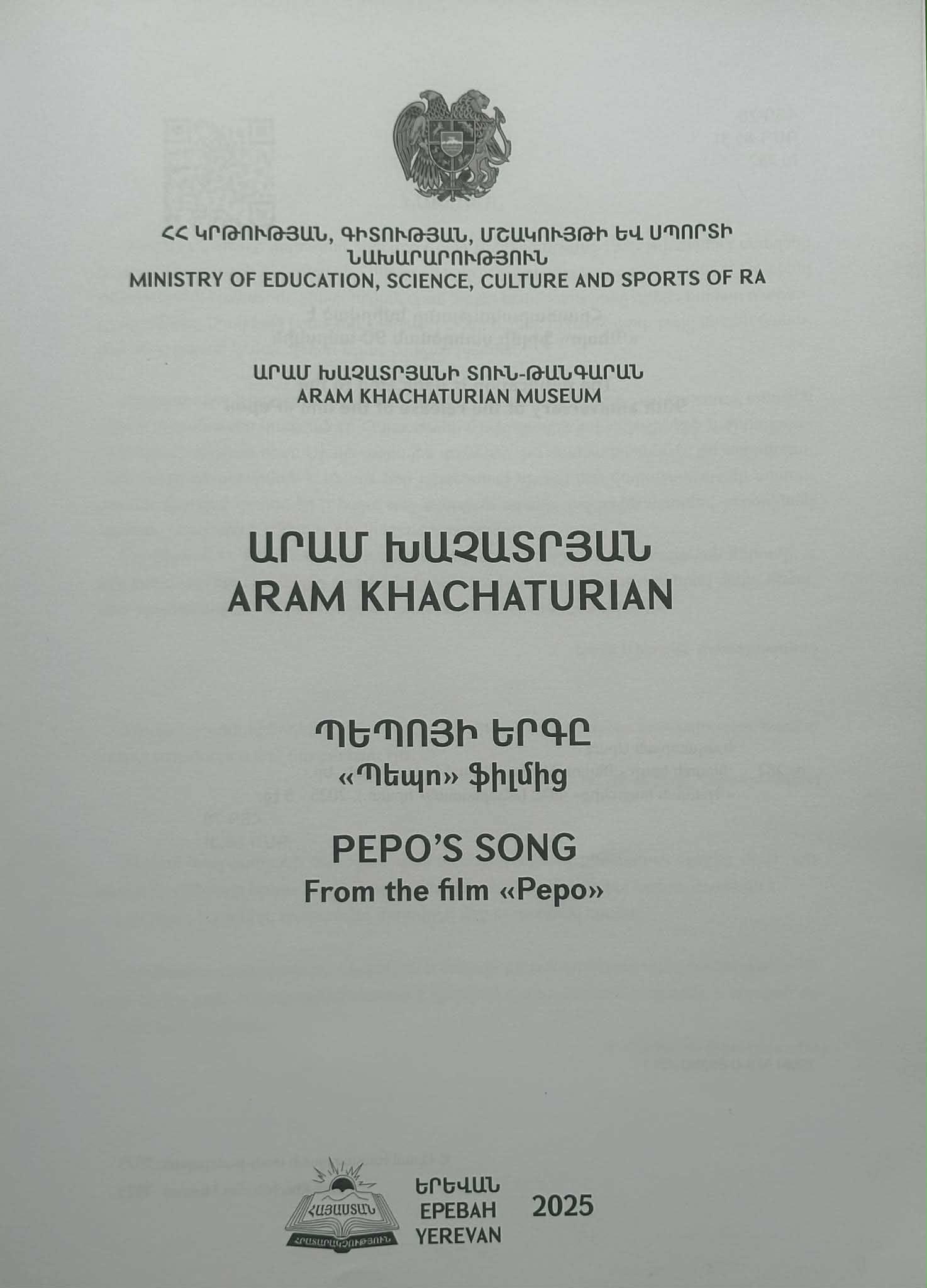К этому юбилею дом-музей Арама Хачатуряна издал ноты песни Пепо. В области киномузыки «Пепо» стал дебютом Арама Хачатуряна, занявшим значительное место в истории армянского кино.