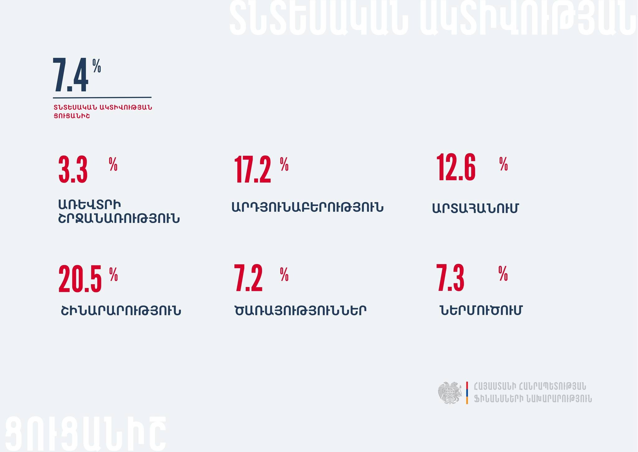 В Армении показатель экономической активности за первые два месяца 2026 года был на 7,4% выше по сравнению с аналогичным периодом прошлого года.