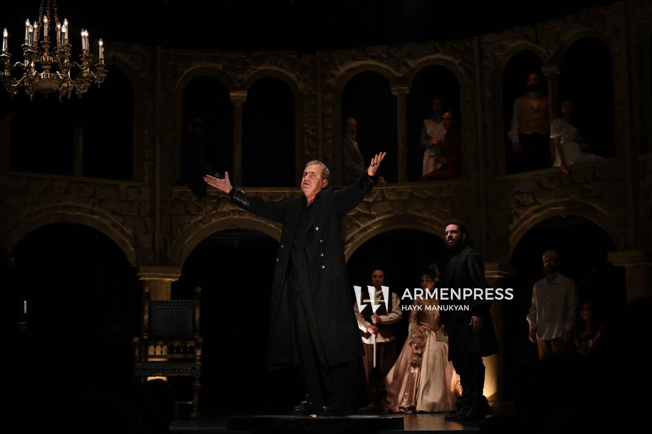 Ներկայացման մեջ արքայազնի դերում Լևոն Հախվերդյանն է։ Մինչ բեմ բարձրանալը նա բավականին լարված էր։ Ասում է՝ մնաց հինգ րոպե մինչև աղետն ու խոստովանում՝ բեմում ամեն բան փոխվում է։